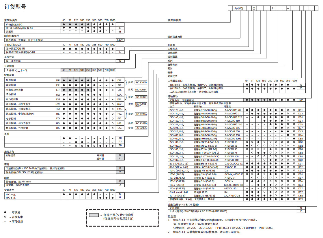 特性:斜盤(pán)結(jié)構(gòu)軸向柱塞變量泵A4VSO用于開(kāi)式回路的靜液壓傳動(dòng);流量與輸入轉(zhuǎn)速和排量成比例,通過(guò)調(diào)節(jié)斜盤(pán),流量可無(wú)ji調(diào)節(jié);開(kāi)槽控制的斜盤(pán)設(shè)計(jì);排量無(wú)ji可調(diào);良好的吸油性能;允許額定工作壓力350bar;噪音級(jí)低;使用壽命長(zhǎng);驅(qū)動(dòng)軸可吸收軸向和徑向負(fù)載;功率/重量比高;標(biāo)準(zhǔn)結(jié)構(gòu);控制時(shí)間短;通軸驅(qū)動(dòng)和泵可組合使用;斜盤(pán)擺角指示器;安裝位置可選;在工作canshu降低的情況下,可使用HF油液工作。