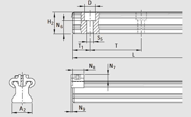 4)如果端部尺寸小于T1 min,則導軌端面不能加工螺紋孔。